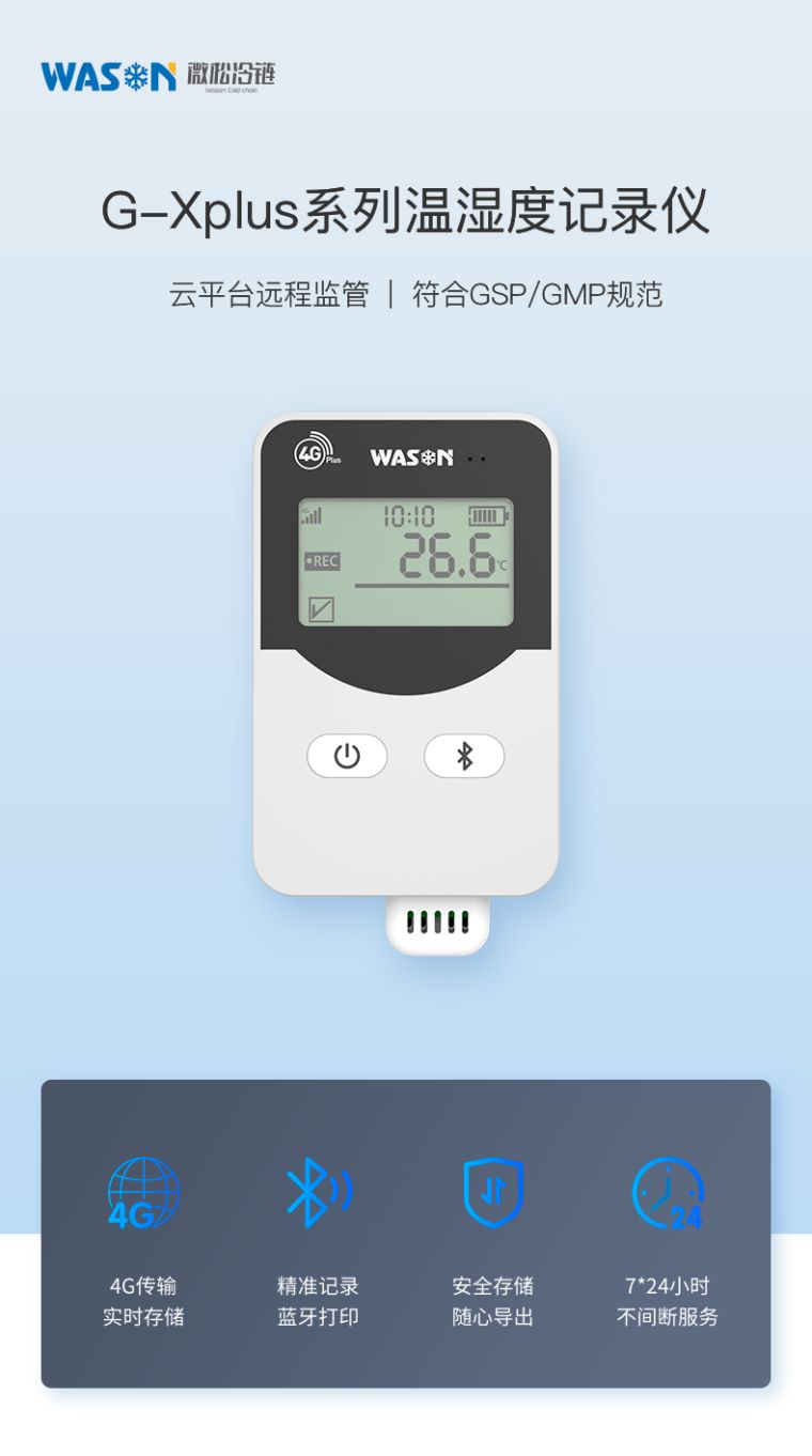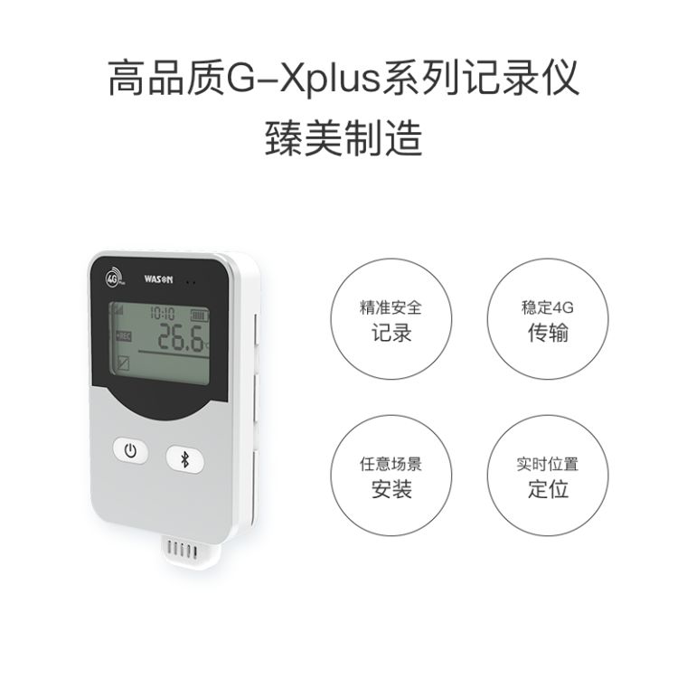 微松G-Xplus系列温湿度记录仪是一款4G传输的网络型智能仪表,符合GSP/GMP规范。可实现远程温湿度监测、实时定位、蓝牙打印、超限报警、开关门报警等功能,同时具有**的续航能力。通过冷链汇云平台可实现记录仪参数远程设置、历史数据和位置轨迹查询。广泛应用于医药冷链、食品生鲜等行业,可配合保温箱嵌入使用。