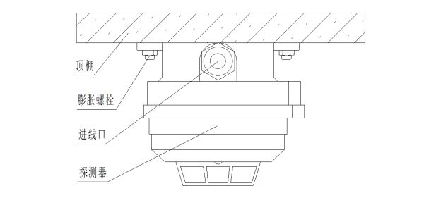松开探测器外壳固定螺钉,打开隔爆腔,将试验用线去掉,用直径约为8mm的电缆作为系统用线。