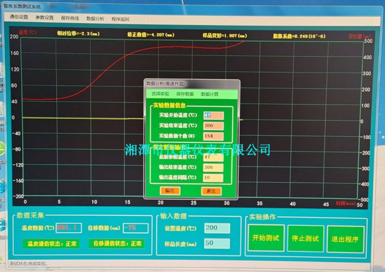 5、计算机自动计算膨胀系数、体膨胀、线膨胀量;
