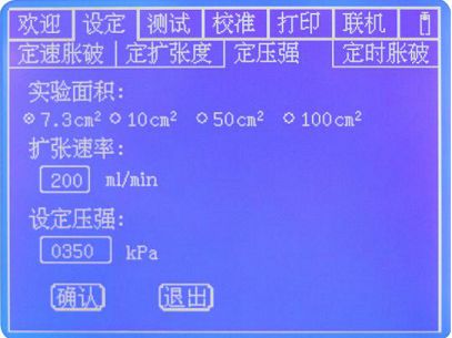 9、四种方式:定速胀破,定压力,定扩张度、定时四种测试方式。