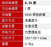 4. 彩屏显示,实时显示倾斜角和方位角;