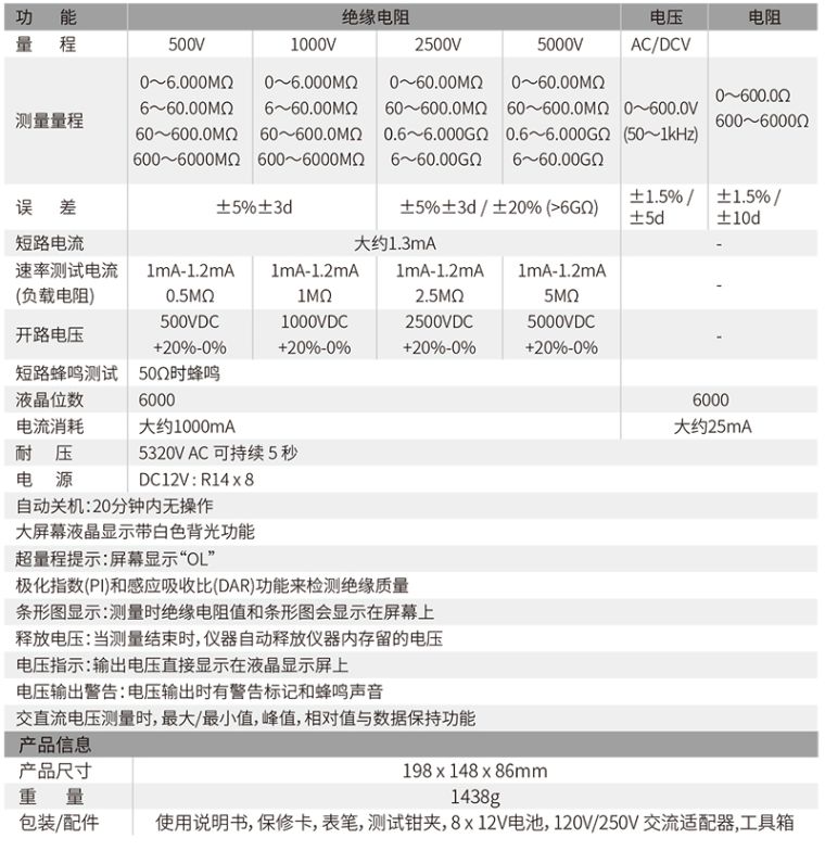 大量程测试:5000V、60GΩ的大量程测试满足 电力测量需求