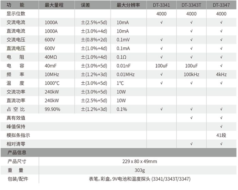 真有效值TRMS,可准确测量非线性负载电路指标(DT-3343T\3347)技术指标