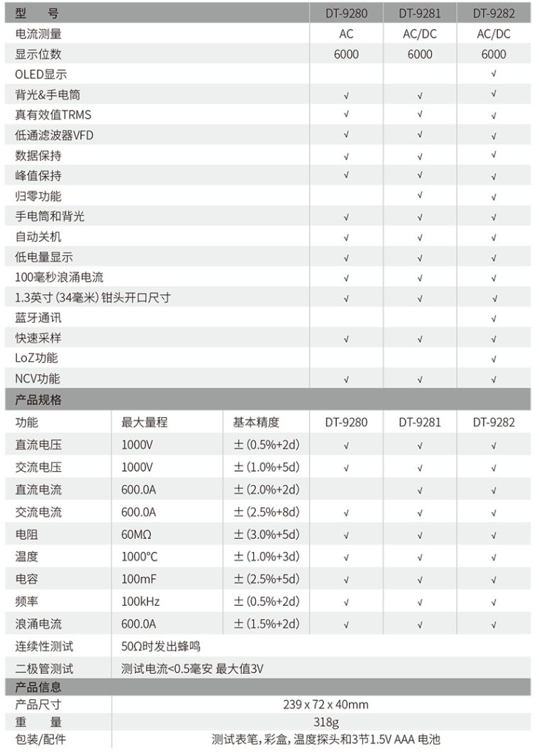 CEM DT-9280/9281/9282系列是CEM华盛昌新设计的600A真有效值工业级交直流数字钳形表,双注塑设计、6000位计数、带真有效值TRMS测量、快速采样、高清大LCD显示屏易读取并且方便保持显示屏上的测量数据,深受电力电气行业用户青睐和选配。