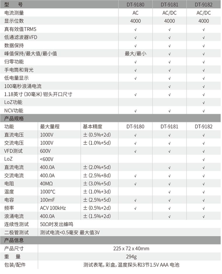 DT-9180 400A真有效值工业级数字钳形表