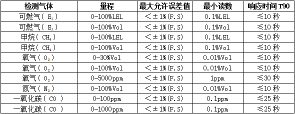 分 辨 率:0.01ppm或0.001ppm(0~10 ppm),0.01ppm(0~100 ppm),0.1ppm(0~1000 ppm),1ppm(0~1000 ppm以上),0.01毫克/升(0~200%毫克/升),0.1%LEL,0.01%,0.001%Vol