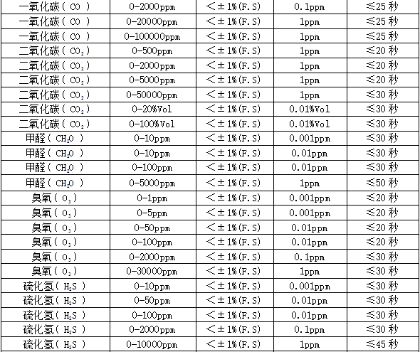 分 辨 率:0.01ppm或0.001ppm(0~10 ppm),0.01ppm(0~100 ppm),0.1ppm(0~1000 ppm),1ppm(0~1000 ppm以上),0.01毫克/升(0~200%毫克/升),0.1%LEL,0.01%,0.001%Vol