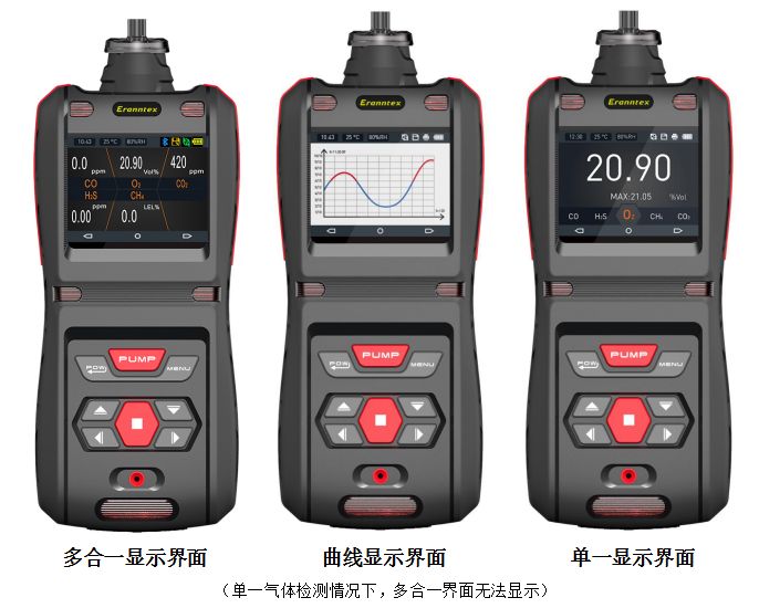 检测方式:内置泵吸式测量,响应迅速,采样距离超过10米,特殊气路设计,可直接检测负压或正压-0.5~2公斤的气体,对测量结果无影响;可以同时检测1~5种气体。