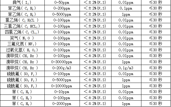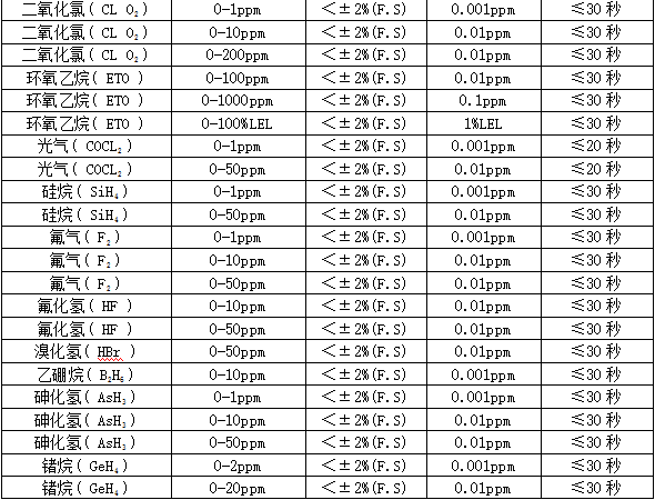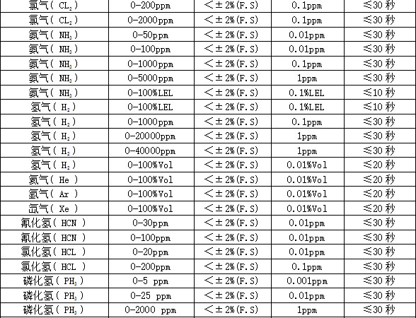 ppm),1ppm(0~1000 ppm以上),0.01毫克/升(0~200%毫克/升)、0.1%LEL、0.01%、0.001%Vol。