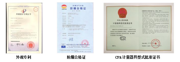 ●防水溅、防尘、防爆、防震,本安电路设计,抗静电,抗电磁干扰,通过国标测试和CPA计量器具型式批准认证