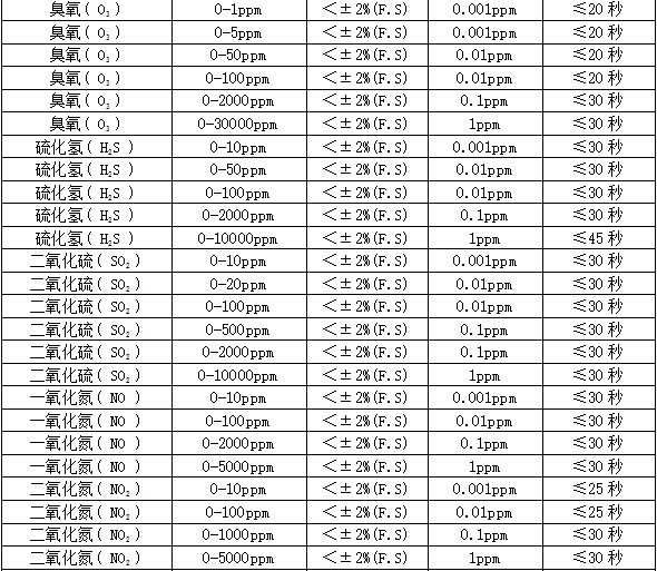 分 辨 率:0.01ppm或0.001ppm(0~10 ppm);0.01ppm(0~100 ppm),0.1ppm(0~1000 ppm),1ppm(0~1000 ppm以上),0.01毫克/升(0~200%毫克/升),0.1%LEL,0.01%,0.001%Vol