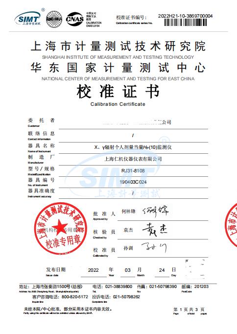 个人剂量测量仪(RJ31-8108)ISO认证