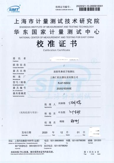 放射性鼻拭子检测...计量检测报告