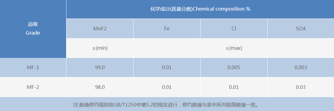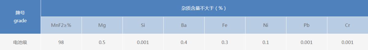 电解锰生产除杂;窑业及有色金属焊接的原料;光谱纯试剂等;电池级氟化锰是锂电池材料制备的原料。