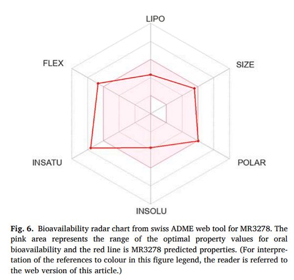 接下来,使用SwissADME、PreADMET和pkCSM数据库来预测MR3278的不同ADMET参数。