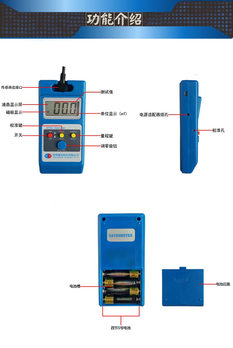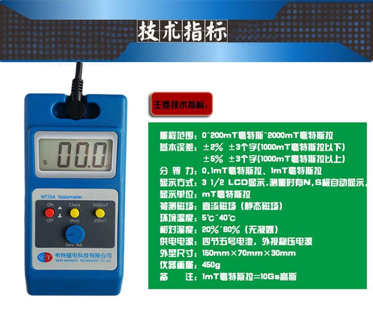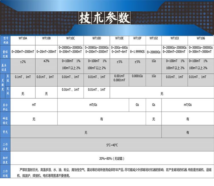 基本误差:±2% ±3个字(1000mT 以下);±5% ±3个字(1000mT 以上)