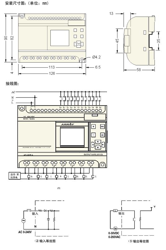 ▲此型号为交流供电,数字量输入,12点AC输入,8点继电器输出