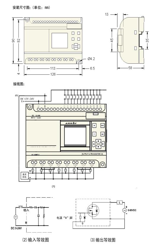 ▲此型号为直流供电,数字量输入,12点DC输入,8点晶体管输出