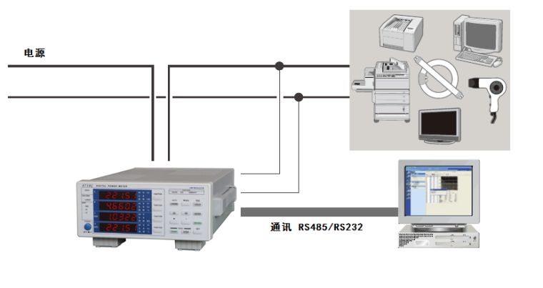 | 测量参数 | 电压U、电流I、频率f、有功功率P、无功功率Q、 视在功率S、功率因数PF、积分(功率和电流)、等 功能可扩展:谐波失真、谐波成分等其他功能 |