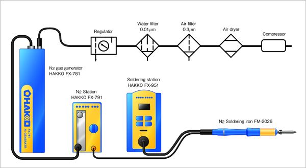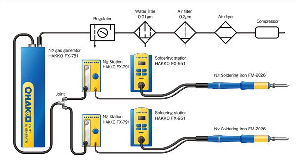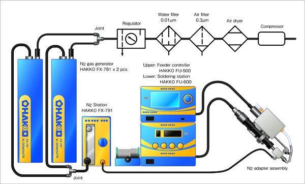 氮 气 供 应 量 是 FX780 的 两 倍,可 同 时 连 接 两 组 焊 台。