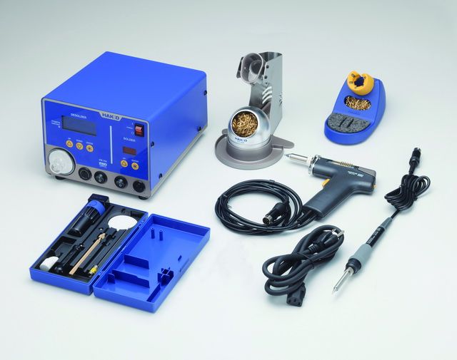 控制台, FX8801焊铁, FR4101吸锡鎗,FH800焊铁架(连清洁海绵,清洁丝),FH410吸锡鎗架(连清洁丝),工具箱(Φ1.0mm清洁针, 发热芯清洁针, Φ1.0mm清洁钻针, 吸咀扳手,过滤纸2片, 陶瓷过滤纸(L) 4片),电源线, 使用说明书