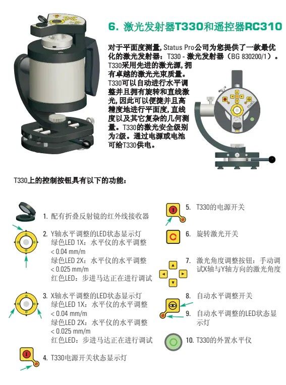 对于平面度测量,Status Pro公司为您提供了一款优化的激光发射器:T330 - 激光发射器(BG 830200/1)。