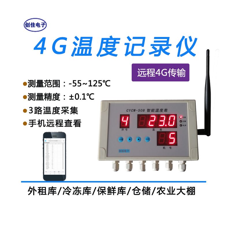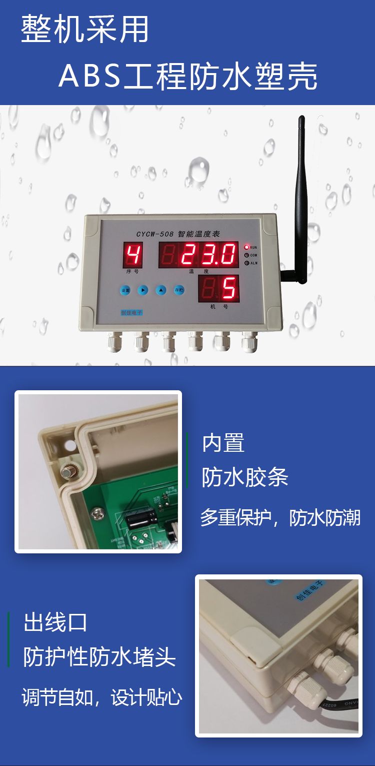 CYCW-508智能温度仪表是一款支持GPRS无线传输、具有数据记录功能的多点温(湿)度测量仪表。采用防水防潮外壳,适用于食品加工、冷藏库、保鲜库、医药、农业大棚等行业。