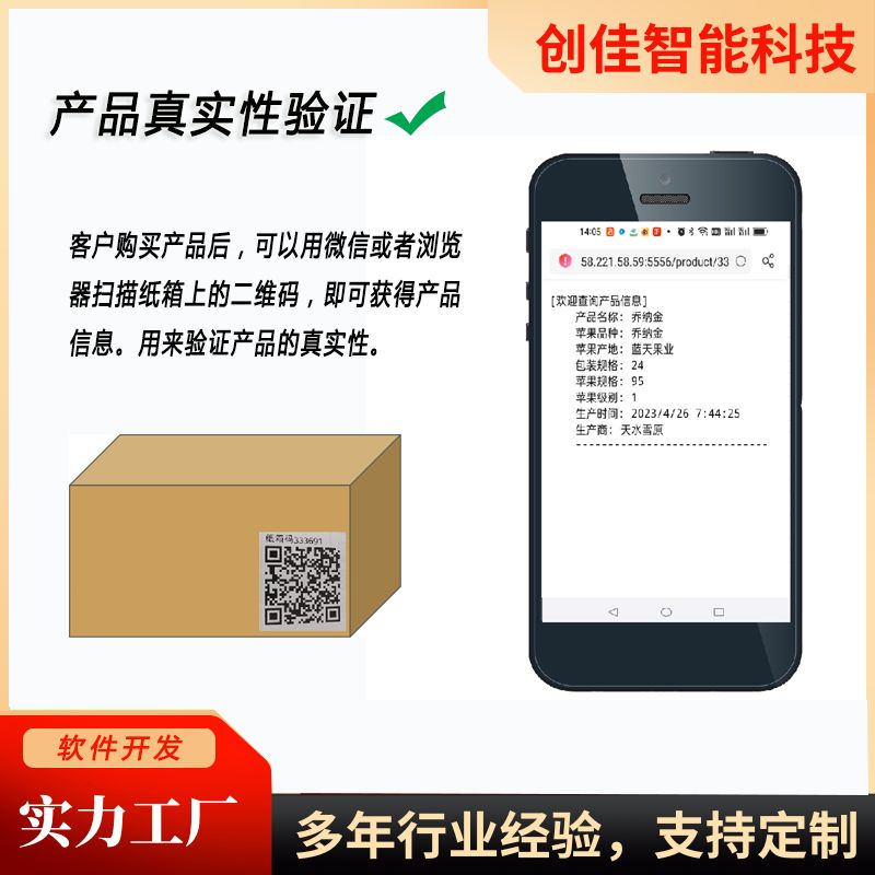 使用浏览器扫描产品二维码标签,可返回该产品的生产加工等信息。