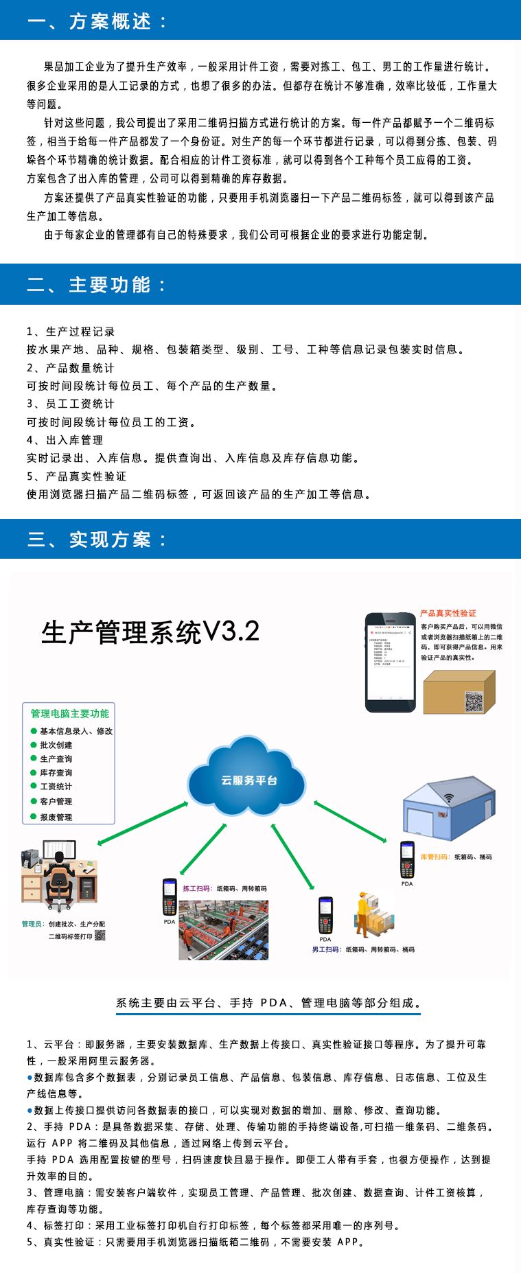 (生产线二维码管理系统包装统计果品加工)主要功能