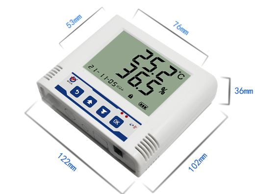 RS-WS-N01-6 系列温湿度变送记录仪采用大屏液晶显示,一路内置蜂鸣器报警,一路外置声光报警器报警,具有自动温湿度记录,温湿度上下限双控,限值自由设置,温度湿度凭密码校准。