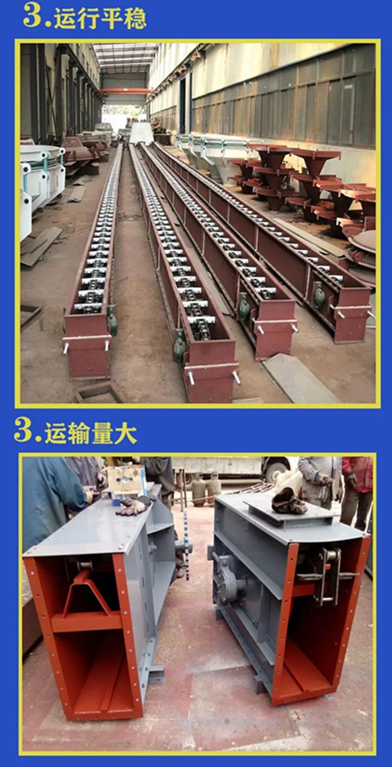 石灰粉末料刮板式输送机MS20-1型,结构简单、横截面尺寸小、密封性好、工作可靠、制造成本低,便于中间装料和卸料,输送方向可逆向,也可同时向相反两个方向输送。输送过程中还可对物料进行搅拌、混合、加热和冷却等作业。通过装卸闸门可调节物料流量。但不宜输送易变质的、粘性大的、易结块的及大块的物料。输送过程中物料易破碎,螺旋及料槽易磨损。单位功率较大。使用中要保持料槽的密封性及螺旋与料槽间有适当的间隙。