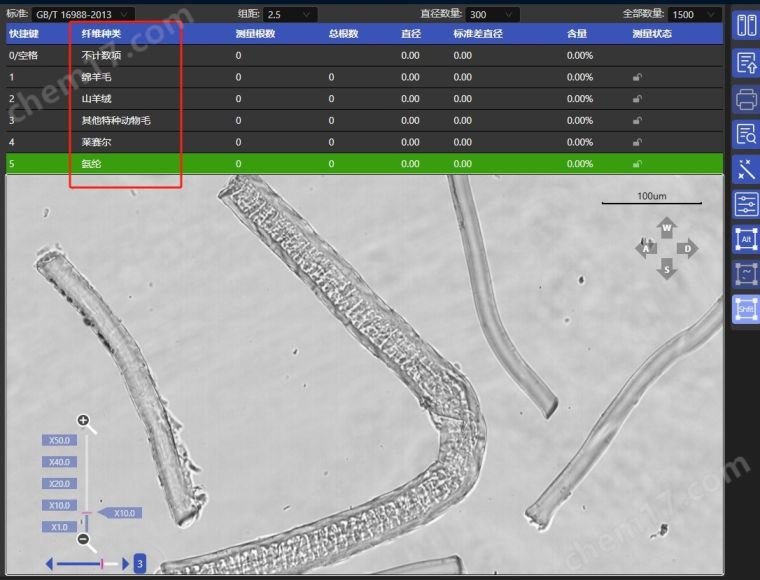 AI自动分类:AI自动分类每根纤维的类型,并出具纤维结果,特种动物纤维准确率高达90%,棉麻和化纤准确率高达99%。