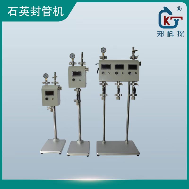 石英试管真空封口机,石英玻璃管熔封机又叫氢氧焰熔封机,是通过成熟的电解水技术,将水分解为和氧气,和氧气经过湿式防回火器,电子阻火器等安全装置后,接到内置阻火器的专用氢氧火焰枪上,使用点火器点火,形成氢氧火焰,对石英玻璃管进行快速熔封的设备。