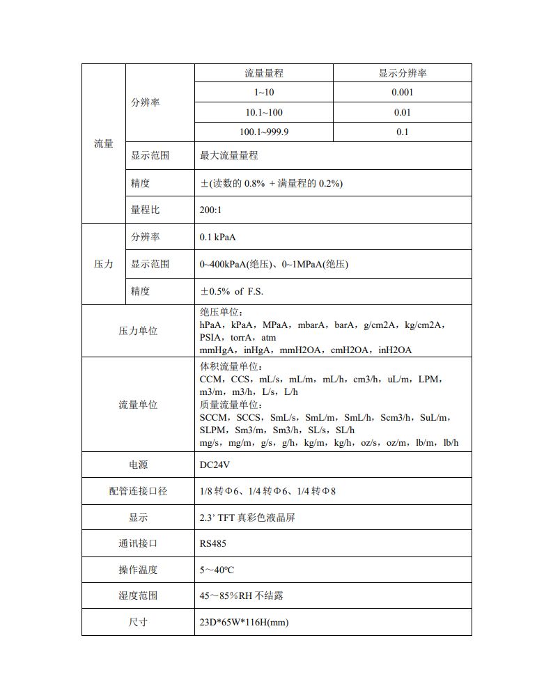 · 质量流量:SCCM、SCCS、SmL/s、SmL/m、SmL/h、Scm3/h、SuL/m