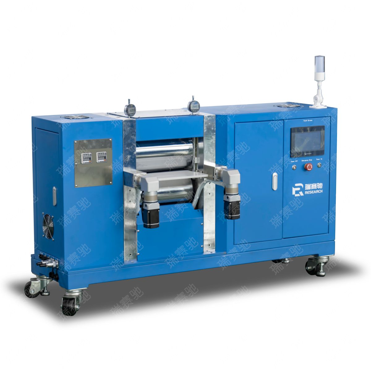 液压系统、测压系统,交流变频电机、减速器、精密联轴节、压下装置、辊系、轧机本体、防护板、PLC触摸屏,电气控制等。