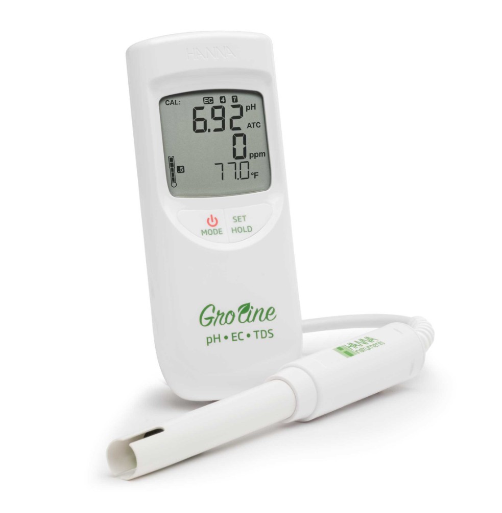 HI9814可以测量酸度pH,电导率,总固体溶解度和温度,所有的操作和设置仅通过两个按钮即可完成,包括校准和温度范围设定。主机外壳式防水设计,IP67防水等级。