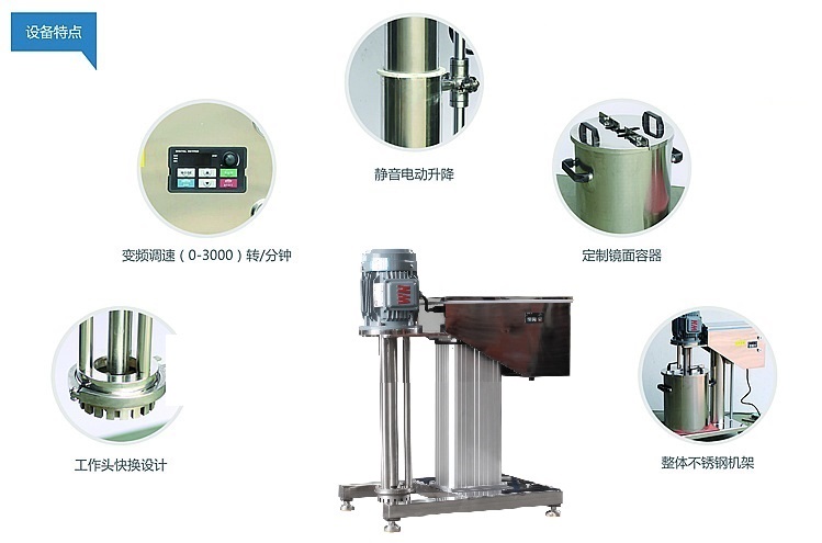 适用于小批量、物料的分散、均质、乳化、粉碎、聚合、悬浮、溶解.