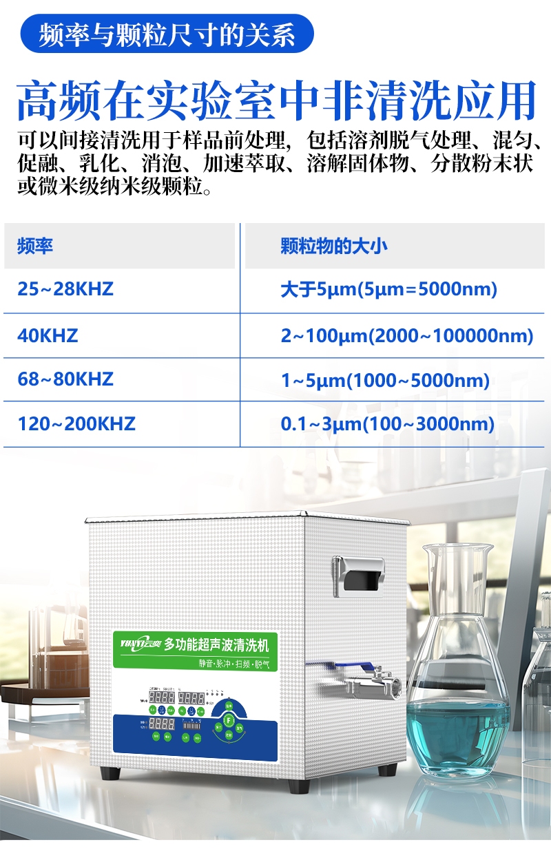 对于精密度比较高,涉及到细胞和微米级纳米级颗粒的实验,用80KHz或者120KHz