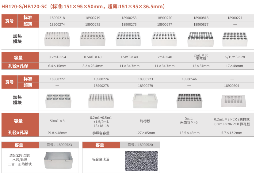 HB120-S金属浴5032101200 金属浴加热器,国标,200-240V/50Hz/60Hz;HB120-S 数显金属浴加热器用于小型容器的精确加热,可连接外接温度传感器PT1000精确控制样品温度。加热块更换简便,多种规格可选,适用于不同规格的试管、离心管、PCR管、96孔板等,广泛应用于分子生物学、组织学、临床检测、环境学、化学分析等领域。