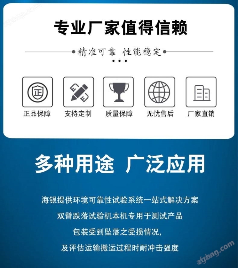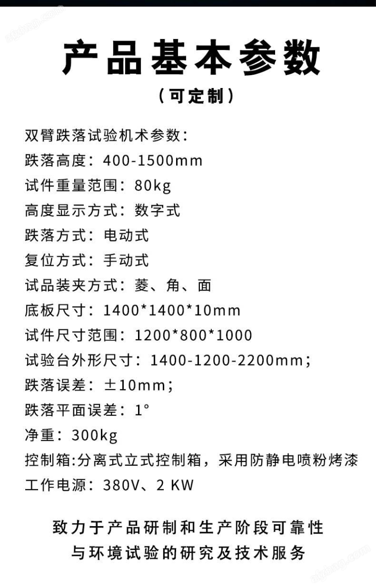 产品介绍:它主要用于模拟产品在运输、搬运或使用过程中可能遇到的跌落情况,以评估其抗冲击能力和包装设计的合理性。双臂跌落试验机是产品质量控制和包装设计优化的重要工具,能够帮助企业提高产品的市场竞争力。