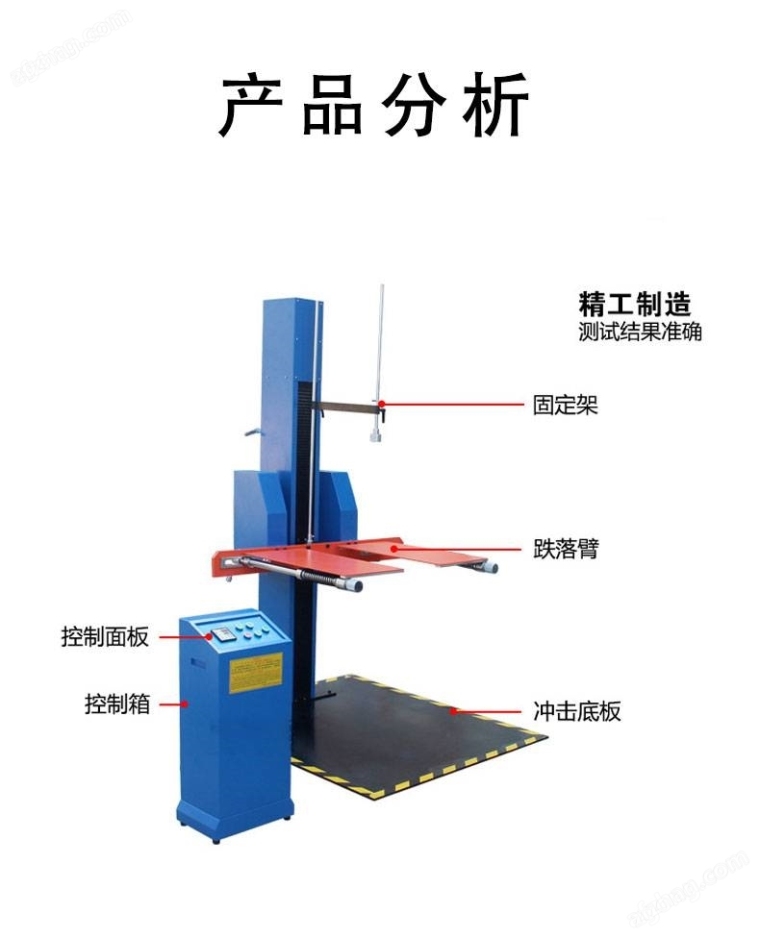 运用领域:包装行业:用于测试包装箱、托盘等包装材料的抗跌落性能;电子产品:评估手机、平板电脑等电子设备在跌落时的耐用性;汽车零部件:测试汽车零部件的抗冲击能力;玩具行业:确保玩具在跌落时不会对儿童造成伤害。