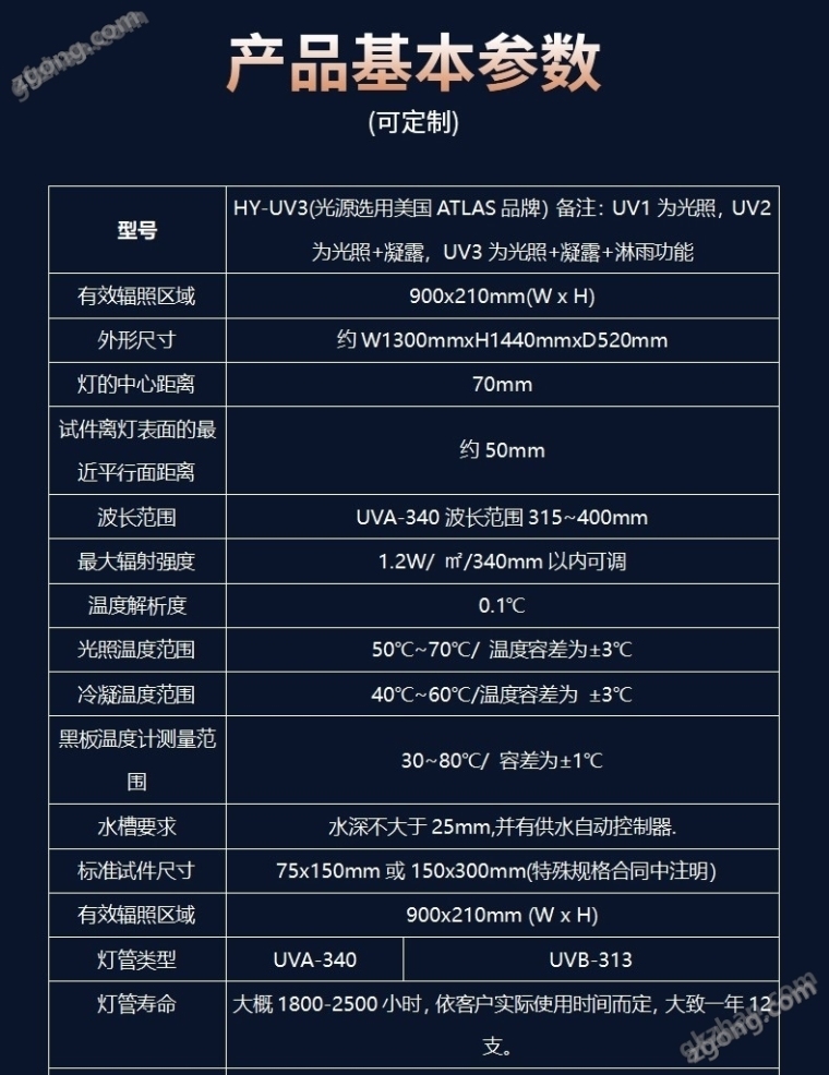 光源通常使用UV-A或UV-B灯管,模拟太阳光中的紫外线部分;温度控制可精确控制测试箱内的温度,模拟不同环境条件下的老化过程;湿度控制部分设备具备湿度控制功能,模拟潮湿环境对材料的影响;自动控制系统具备自动控制和数据记录功能,便于长时间测试和数据分析。