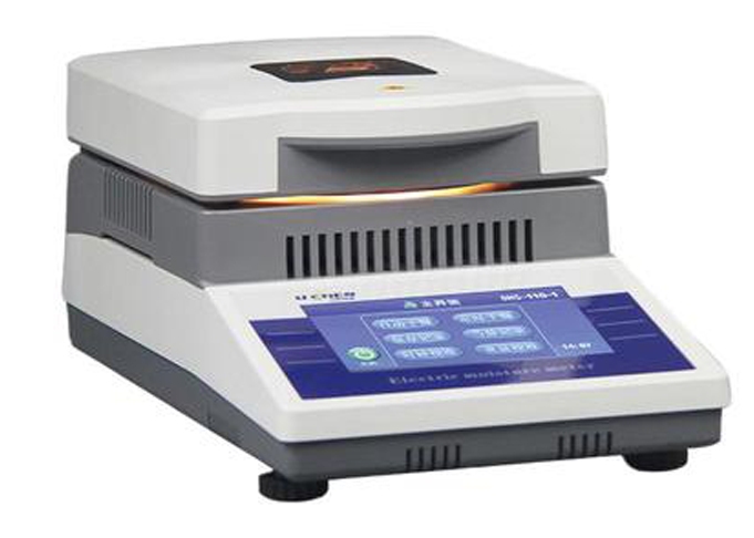 电子卤素水分快速测定仪,采用卤素灯热解重量原理,是一种快速的水分检测仪器。水分测定仪在测量样品重量的同时,卤素灯加热单元和水分蒸发通道快速干燥样品,在干燥过程中,水分仪持续测量并即时显示样品丢失的水分含量%,干燥程序完成后,最终测定的水分含量值被锁定显示。