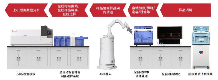 - 样本制备系统具有多种功能模块可选,包括但不限于分装、称重、加液溶解、配制标样、全自动电热消解、超级微波消解、赶酸、稀释定容、过滤进样、液液萃取、滴定等