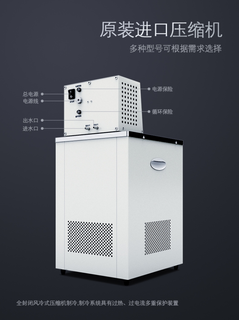 6、专业的循环搅拌设计保证了槽内液体良好的水平和垂直均匀性,容积20L以上低温槽搅拌泵流量10L/in,其余8L/min 温度波动度+0.05℃,显示分辨率0.1℃;