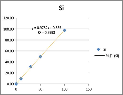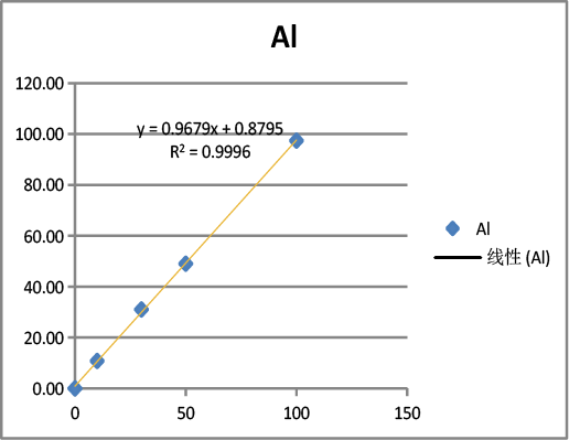 通过加标制成不同浓度标准样品,对其中多种金属元素进行直接分析,其测量准确性与标准值的相对误差来考察仪器的测试准确性。