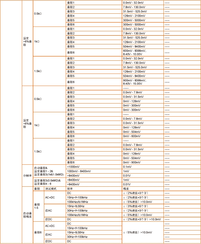 绝缘电阻 IR | 电压 | 0.05-5.0kV | 输出电压超过市场上大多数绝缘测试仪的1kV |