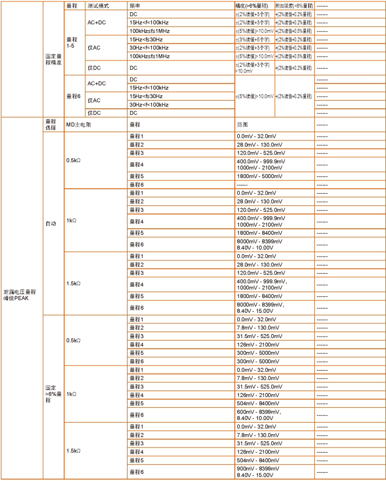 交流耐压 ACW | 电压 | 0.05-5.0kV | 大功率输出,适合带电机家电如冰箱、空调、洗衣机等测试 大功率变压器、大功率电机测试 |