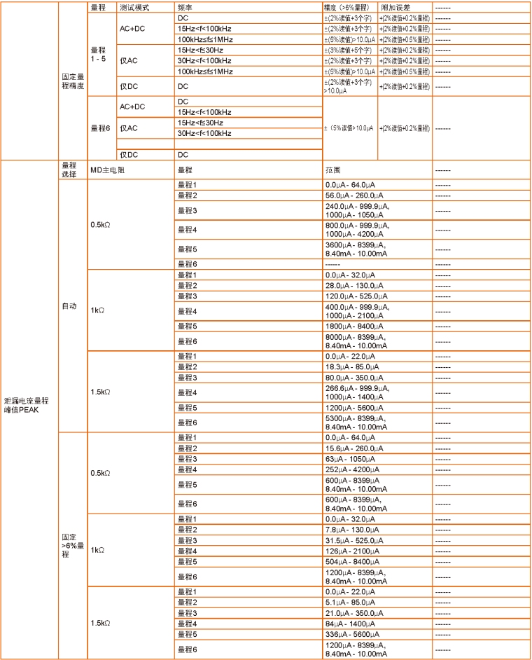 泄漏电流 | 0.0uA-10.00mA | ------ | |||