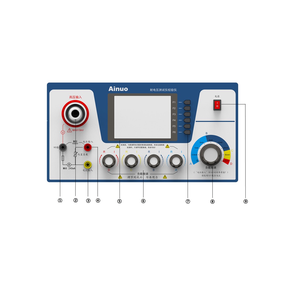 3. 外置负载: 用于被检耐压仪泄漏电流测量误差检定,与外置电阻负载非高压端连接。